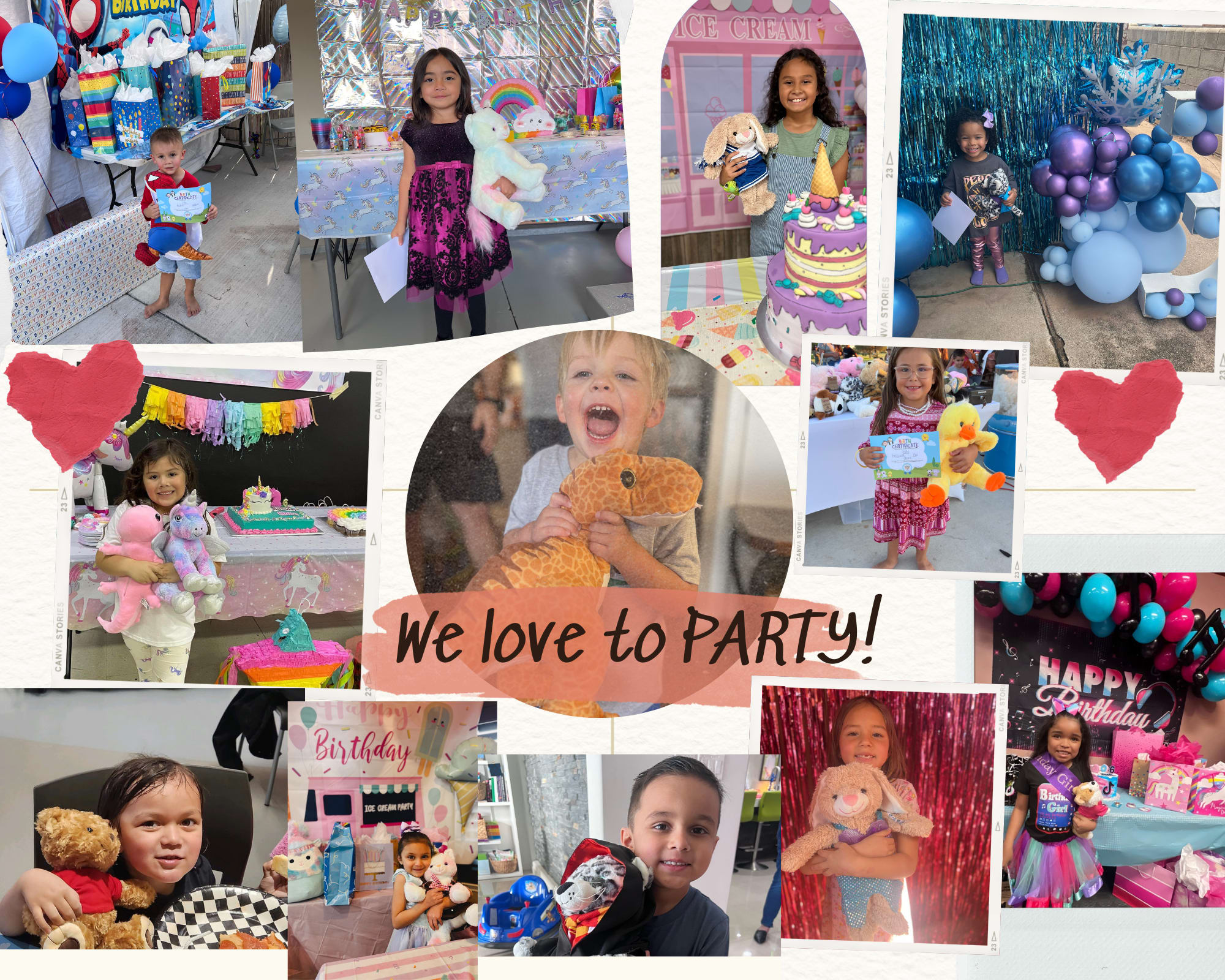 Our objective is to provide a fun and interactive experience for children and adults alike. The smiles and excitement shown by everyone involved are what keep us in business! Let's make your plush pal together.